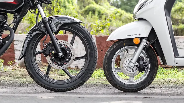 The highway is another area where the CB Shine beats the Activa 125 fair and square. While none of these two are actually meant for highway cruising, the CB Shine outperforms the Activa 125, be it the high speed stability or cornering . The bigger contact patch on the CB Shine (courtesy the bigger wheel) allows you to go faster into the corner.