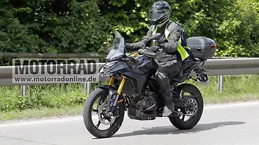 Unlike the earlier concept model, the latest test mule features fully finished bodywork, including a tall touring-style windscreen, vertically-stacked LED headlamp, and a longer rear section, hinting at its touring-focused demeanour. This version is a road-biased variant, riding on 19-inch front and 17-inch rear alloy wheels.